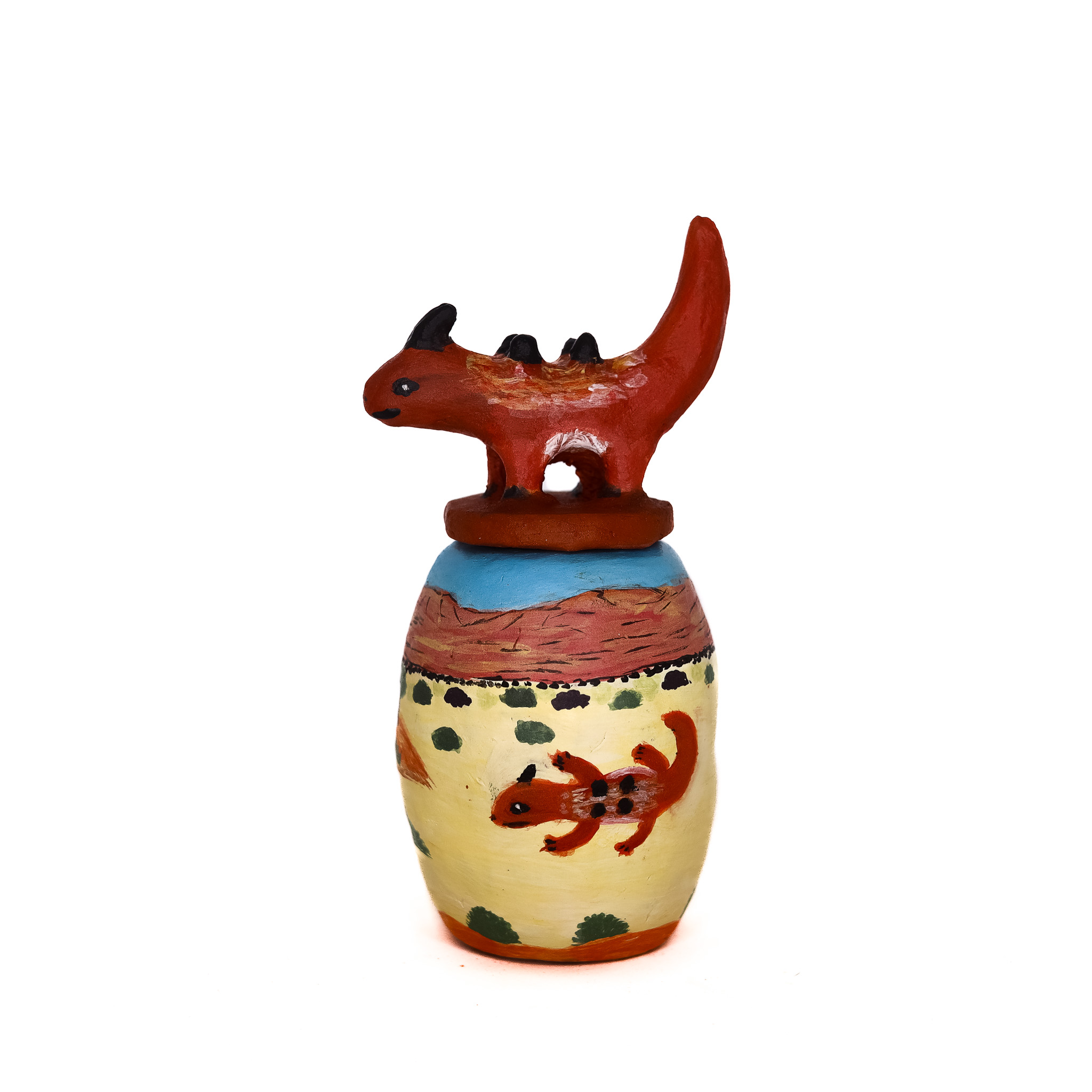 <p>Kids find the thorny devils. </p> (terracotta and glazes, 17x7x7cm)